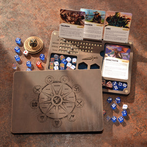 This handcrafted wooden dice box isn’t just a storage solution — it’s a functional dice tray and magnetic tracker combined in one sleek accessory. Designed with tabletop roleplayers in mind, it keeps your dice, minis, and game tokens safe while helping you manage the flow of your adventure.