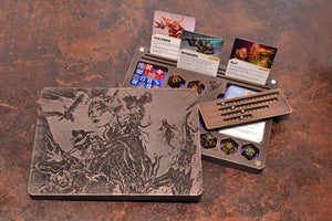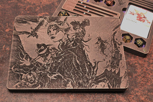 The lid features a finely detailed laser engraving, created to echo the spirit of fantasy worlds. Choose from our pre-made artwork or send us your own design for a truly personal touch. Inside, the compartments are lined with soft felt, protecting your dice and making rolls quiet and satisfying.