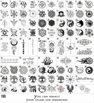 The lid features a finely detailed laser engraving, created to echo the spirit of fantasy worlds. Choose from our pre-made artwork or send us your own design for a truly personal touch. Inside, the compartments are lined with soft felt, protecting your dice and making rolls quiet and satisfying.