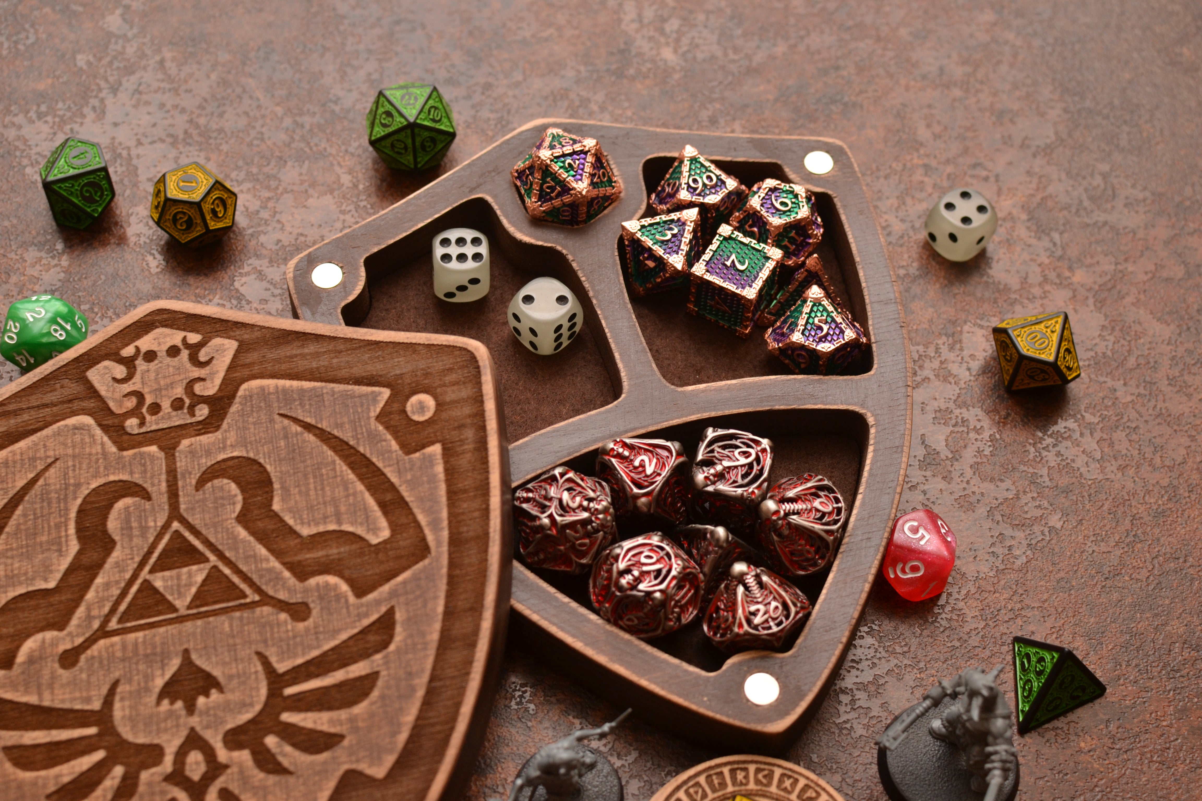 Hylian Shield Dice Box Set: Legend of Zelda Wooden Dice Tray