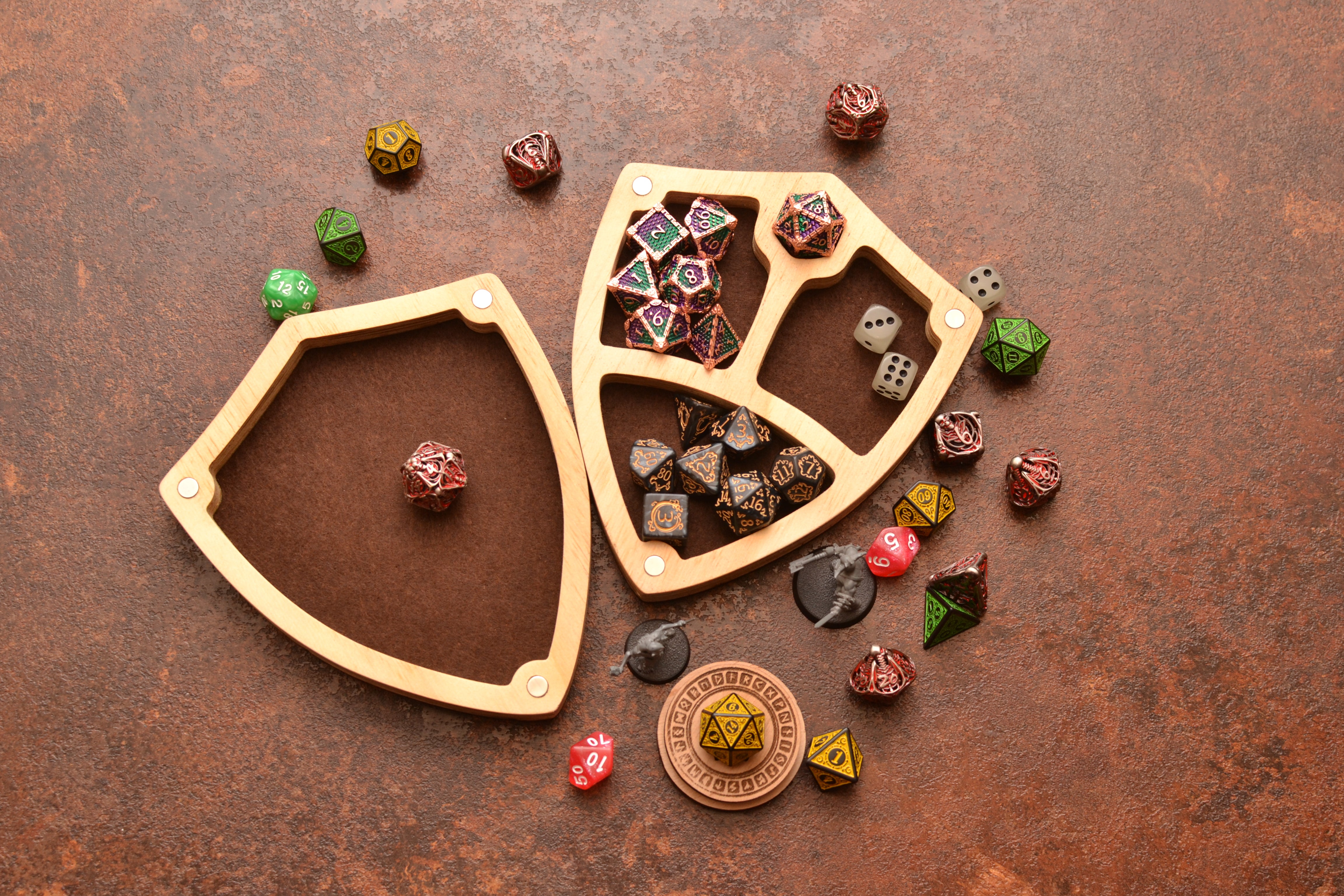 🎲 Dice Storage: Holds up to 3 full dice sets, with compartments to keep your collection organized.