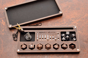 Featuring a built-in Magnetic Spell Slot Tracker, this organizer keeps your HP, Armor, Stress & Hope points visible and easy to manage, while your dice stay neatly arranged inside. Perfect for players and Dungeon Masters alike, this dice vault combines utility, durability, and fantasy-inspired style.