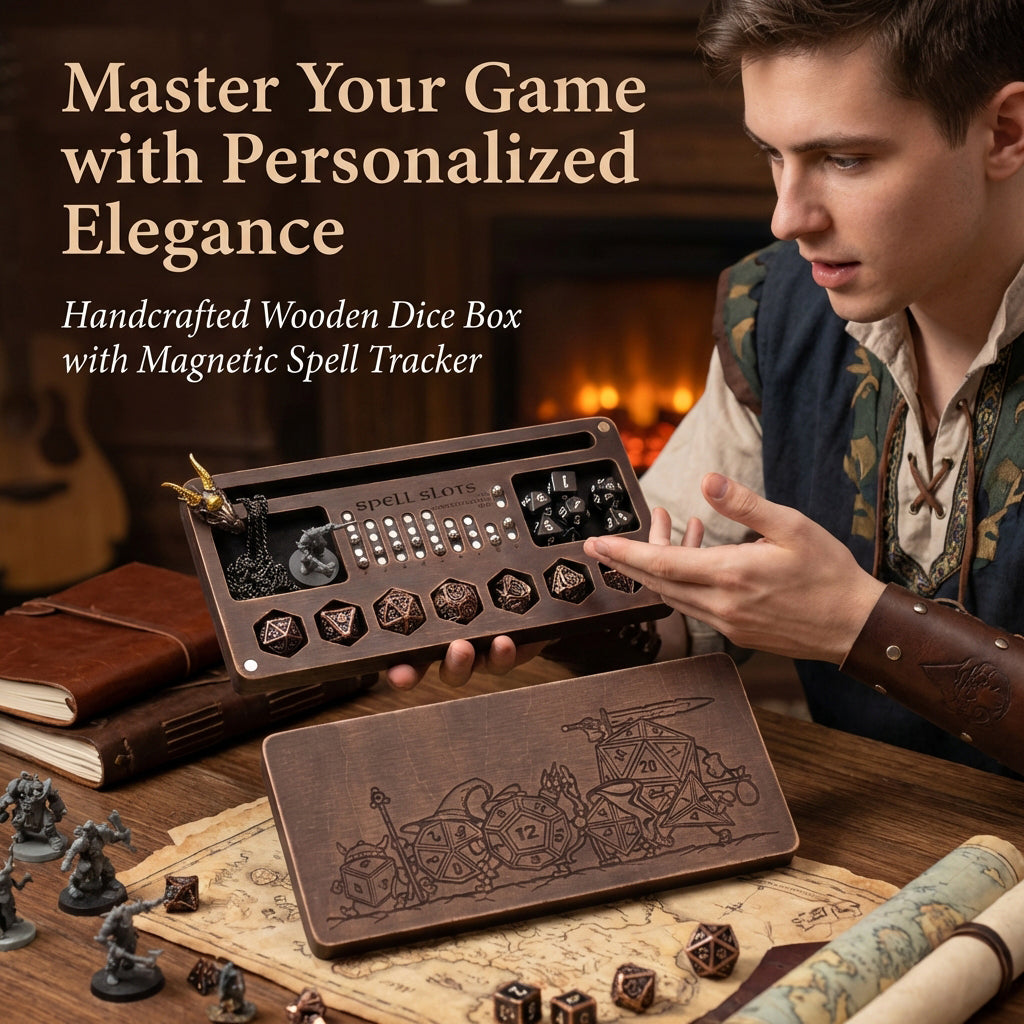 Personalized Wooden Dice Box with Magnetic Spell Slot Tracker for DnD