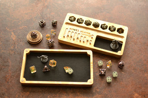 Handcrafted dice box with magnetic spell slot tracker and premium dice storage.