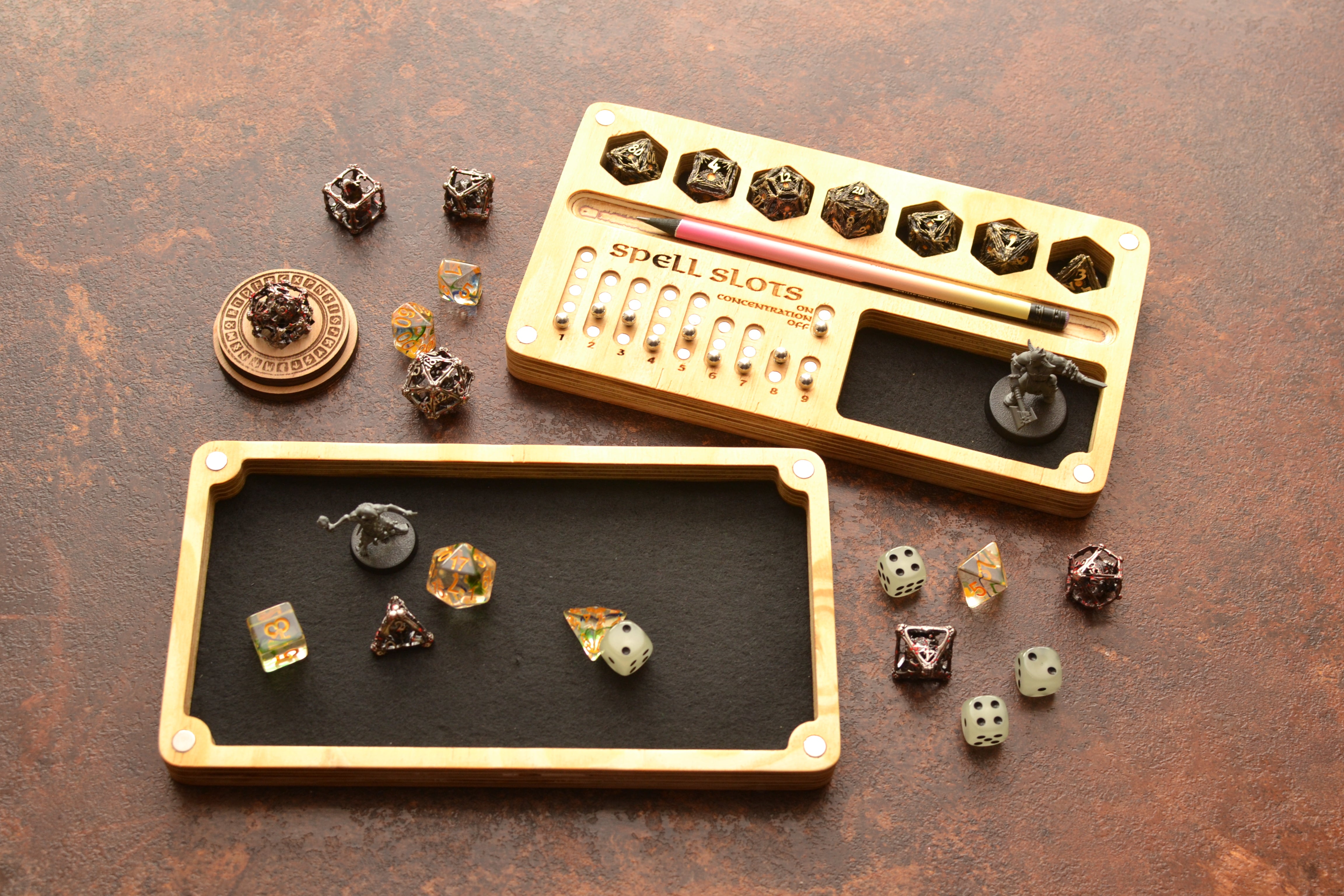 Bring order and magic to your table with this custom dice tray and spell tracker – an organizer built for true adventurers.